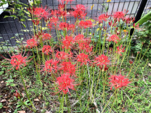 近く道路沿いの花壇で09月27日撮影。ブラジル原産の植物でクリスマスシーズンに鉢植えでよく見かけるポインセチアの仲間、ショウジョウソウ(猩猩草)というらしい。朱色に色づいた葉を、空想上の生き物「猩猩(しょうじょう)」の顔に例えたものです。猩猩は顔が赤いのだそうです。ちなみにポインセチアにはショウジョウボクの和名があります。