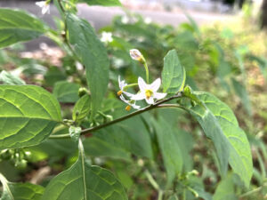 近く道路沿いで11月11日撮影。最初キミガヨランと思ったのですが、葉が途中で垂れるものがなく、アツバキミガヨラン(厚葉君が代蘭)の方のような気がします。花径が伸び、たくさんの花を付けていました。日本では、花粉を媒介するユッカ蛾がいないため、ほとんど結実しない、とあります。