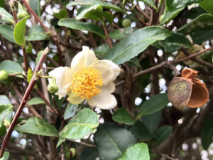 境川沿いで11月11日撮影。ツルウメモドキ(蔓梅擬き)と思われますが、その種子が黄色に熟していました。