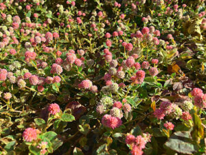 近く道路沿いの花壇で2025年12月16日撮影。蘇鉄と一致にシュウメイギク(秋明菊)が植えられていました。その花がまだ咲いていました。さすがにもう花期も終わりなのか。